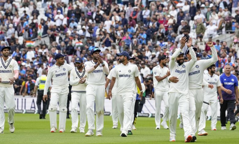 Indičtí hráči oceňují dav po jejich fantastickém vítězství proti Anglii v Oválu 4. srpna 2025. | Foto kredit: PTI
