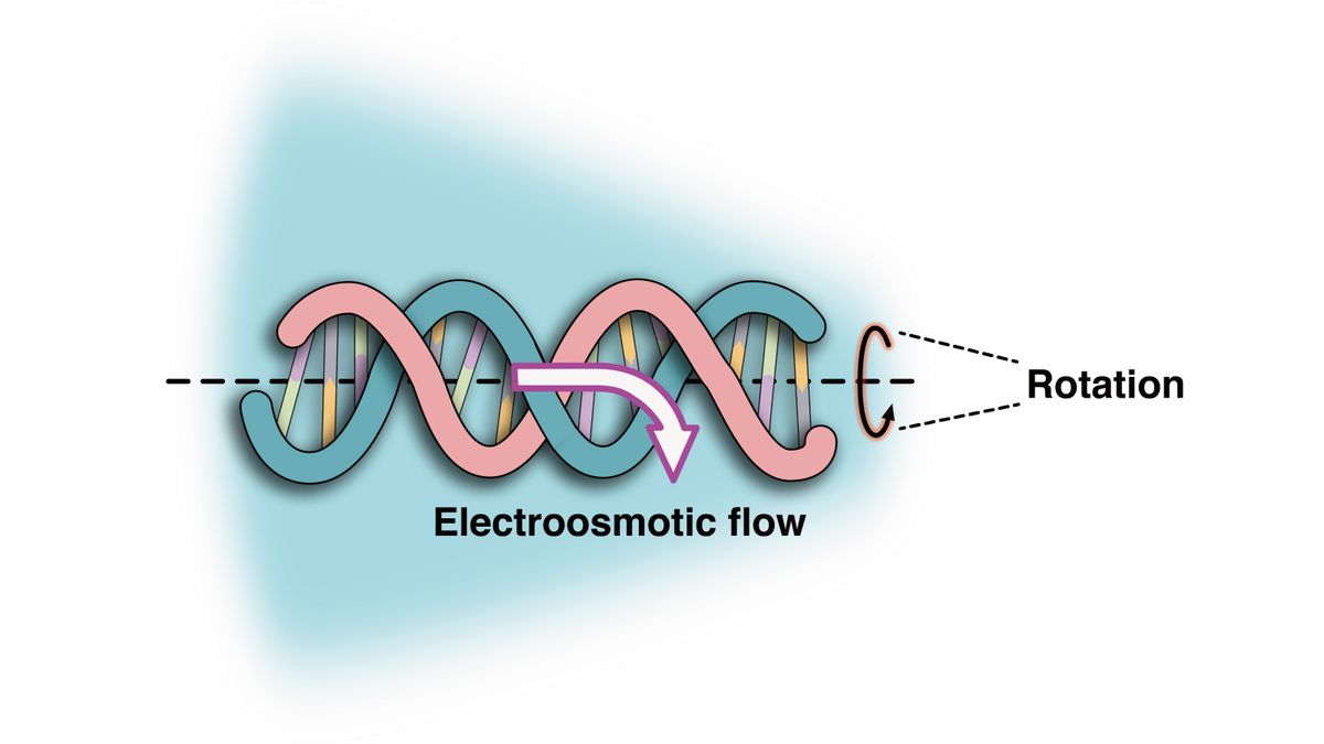 Aby studovali tyto cívky, vědci prošli pramenem DNA nanoporem ve tvaru kužele ve slaném roztoku s vysokým pH. Roztok pomohl vytvořit elektroosmotický tok, což znamená, že se DNA začala otáčet, když vstoupila do pórů. Pohyb generoval dostatečně silnou krouticí sílu nebo točivý moment, který stočil DNA, vysvětlil Keyser.