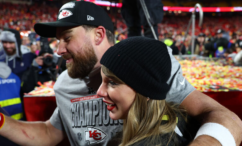 Pár začal chodit v roce 2023 poté, co Kelce neslavně šel na jeho Nové výšky Podcast bědoval nad skutečností, že se na koncertu nesetkal s Swiftem. Poté v této sezóně dostal prsten Super Bowl s náčelníky Kansas City. Nyní má vlastní prsten.