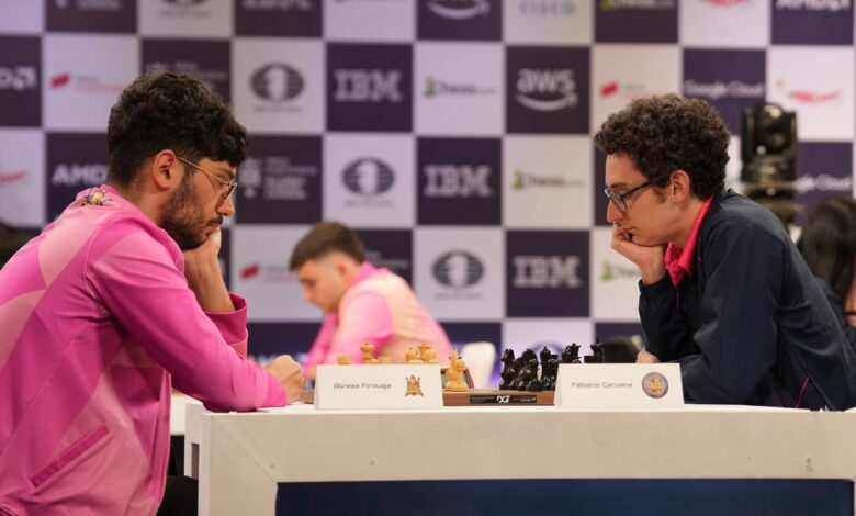 Alireza Firouzja porazil Fabiana Caruanu a pomohl Triveni Continental Kings porazit Alpine SG Pipers v úvodní den Global Chess League v Bombaji. | Fotografický kredit: GCL