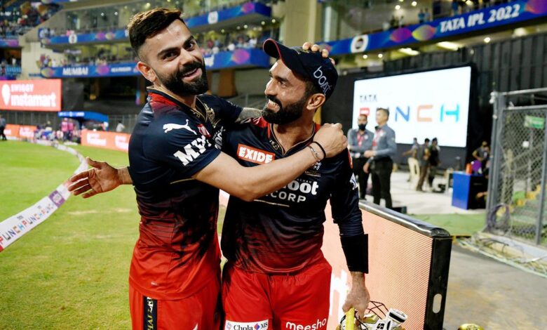 Souborový obrázek Virat Kohli a Dinesh Karthik s Royal Challengers Bengaluru | Fotografický kredit: Sportzpics pro IPL