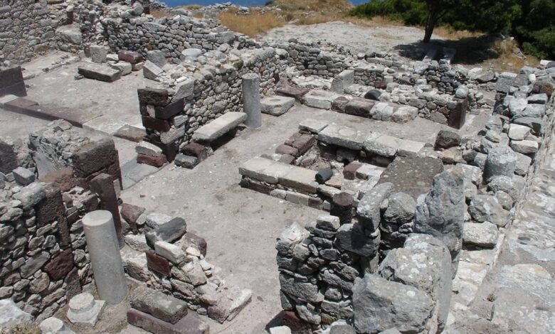 Podpora tohoto data, kdy byl Santorini přesídnut, je skutečnost, že toto je také datum nejranějších archeologických pozůstatků po minojské erupci. Zejména archeologické místo zvané Ancient Thera je nejčasnějším usazením post-minoanu, které bylo dosud nalezeno. Pochází do devátého století před naším letopočtem.