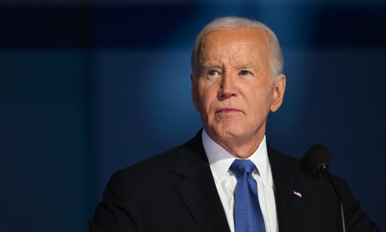 Prezident Joe Biden hovoří na pódiu během prvního dne Demokratického národního kongresu ve United Center 19. srpna 2024 v Chicagu v Illinois.