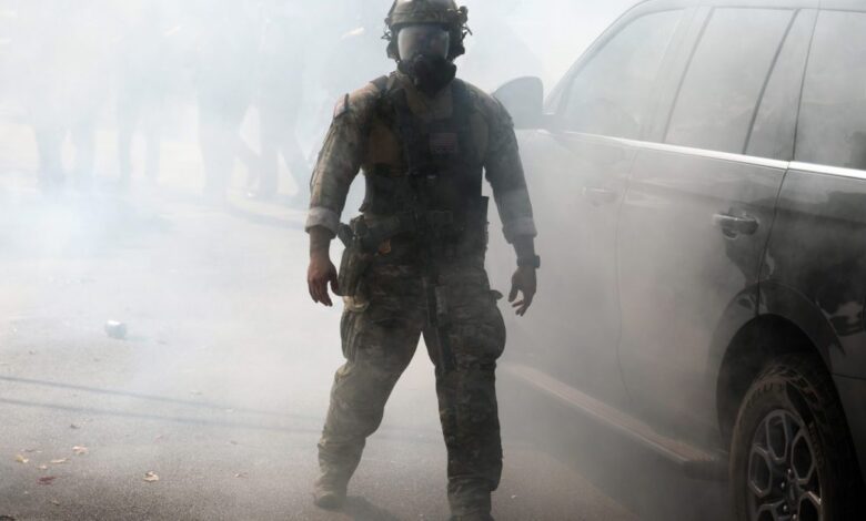 Agent pohraniční stráže prochází oblakem slzného plynu v Chicagu 14. října.Terrence Antonio James/Chicago Tribune/ZUMA