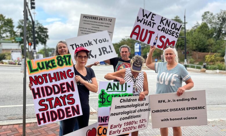 V pátek ráno, Skupina asi 20 aktivistů proti vakcinaci se shromáždila přes ulici od centrály Atlanty Centra pro kontrolu a prevenci nemocí na podporu ministra zdravotnictví a lidských služeb Robert F. Kennedy Jr. a a propagováno Podle obhajoby zdraví dětí, skupinu pro advokacii anti-vakcina, kterou vedl před vstupem do politiky. Účastníci shromáždění se ukázali na podporu Kennedyho během týdne, kdy se dostal pod palbu na obzvláště drsnou tiskovou konferenci, kde on a prezident Trump obviňovali volně mulcovaného léta proti bolesti za to, co popsali jako epidemii autismu.