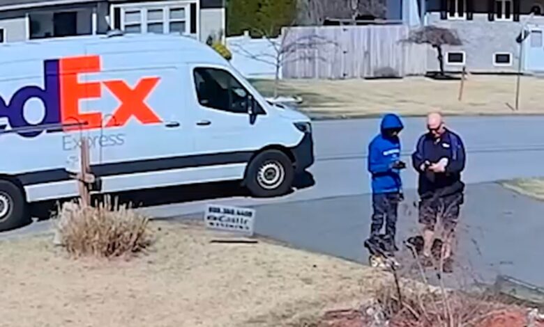 Video ukazuje, že ovladač FedEx odhaluje jméno příjemce na krabici.