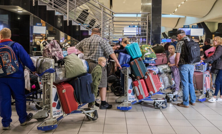 Rodiny, které se v neděli večer na mezinárodním letišti nebo Tambo v Johannesburgu odhlásily, aby se odhlásily o letu, mávly otázky od reportérů a uvádějí, že americké velvyslanectví jim přineslo, aby nemluvili se zpravodajskými médii. Rodiče, s dětmi v závěsu, tlačili vozíky nahromaděny vysoko zavazadly a tiše mezi sebou mluvili.