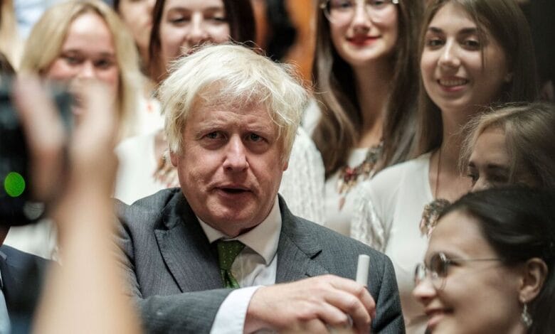 Boris Johnson vydal shromáždění volání proti „kruté a zločinecké“ válce vedené Putinem Rusko proti Ukrajina. Když se evropští vůdci shromáždili v Kyjevě, jen několik dní po označení 80 let od vítězství v Evropě den, bývalý konzervativní vůdce přirovnal ruský vůdce k Adolfovi Hitlerovi a naléhal na Británii a její spojence, aby se chopili Rusko‚S 300 miliard dolarů (225 miliard GBP) v zmrazených aktivech a zpět nové kolo sankcí.