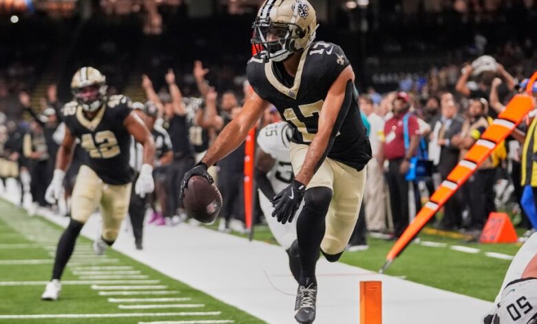 Přijímač Saints Mason Tipton, druhý rok z Yale, chytil šest průchodů na 100 yardů, týden po jeho 54-yardovém dotykovém úlovku od Shoughe proti Los Angeles Chargers.