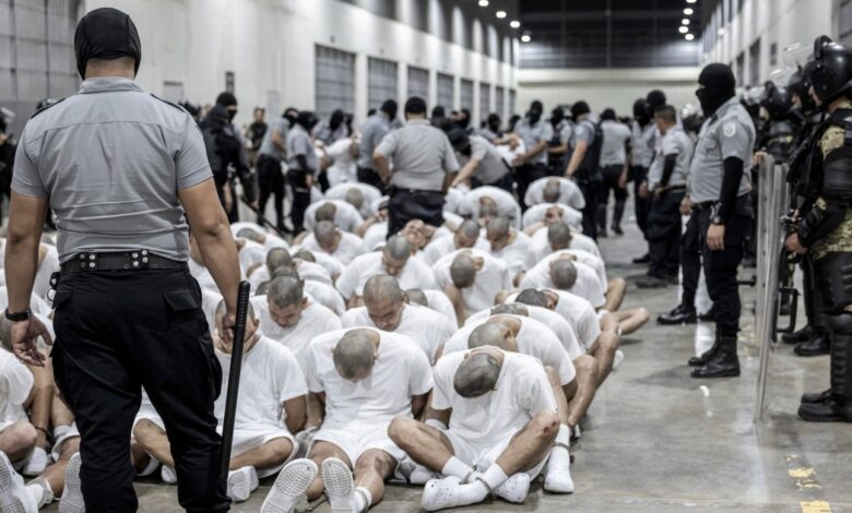 Salvadorská vládní fotografie z března ukazující Venezuelany poslané do Cecotu Trumpovou administrativou.Prezidentská tisková kancelář Salvador/AP
