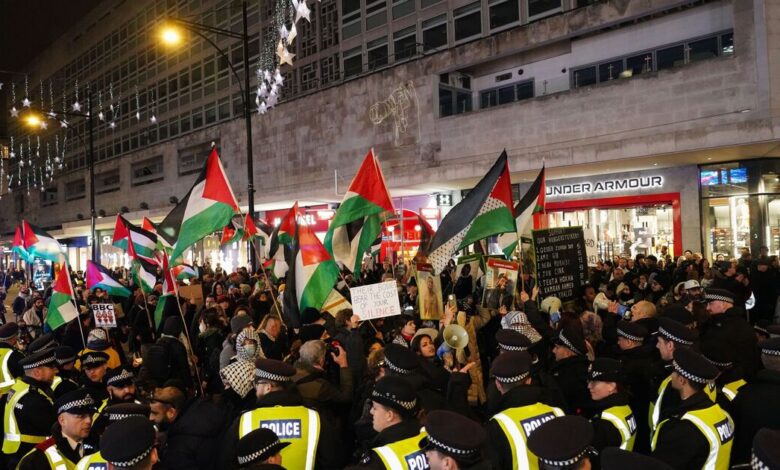 Dva lidé byli zatčeni poté, co křičeli hesla vyzývající k „intifádě“, uvedla metropolitní policie.