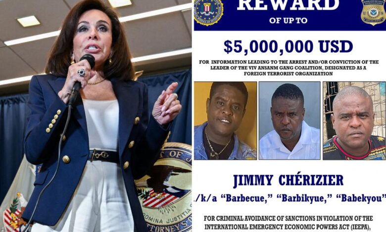 Americká advokát Jeanine Pirro v úterý oznámila obvinění ve Washingtonu, DC Jimmy „Gril“ Chérizier a Bazile Richardson, naturalizovaný občan USA, se spikne, aby nám poslal finanční prostředky na financování haitského gangu Chériziera.