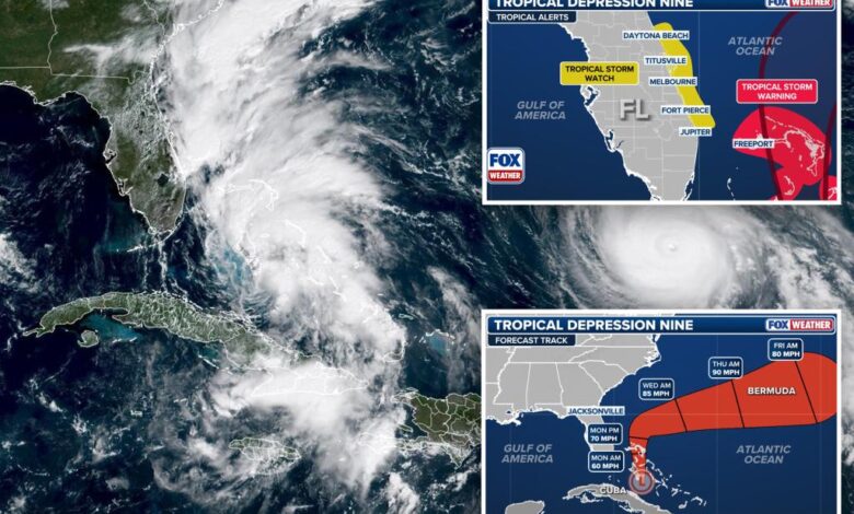 Tropická deprese devět se v současné době nachází v oblasti východní Kuby a jihovýchodní Bahamy a pohybuje se na sever.
