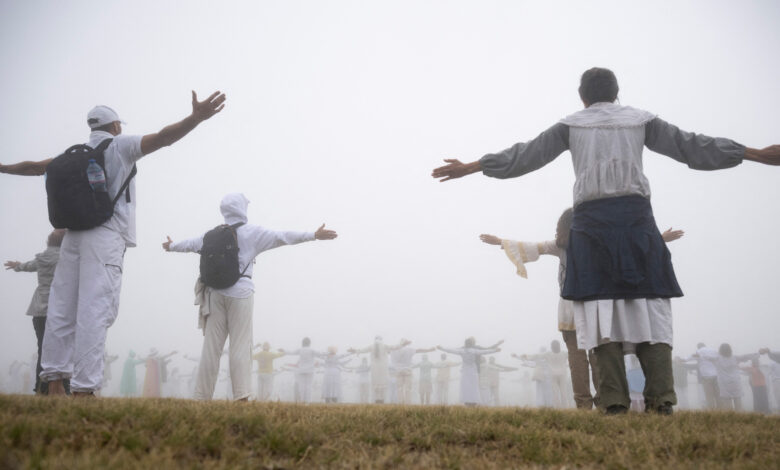 Následovníci bulharského duchovního hnutí Univerzální bílé bratrství, které kombinuje křesťanské a hinduistické mystiky, zpíval a provedl meditativní tanec zvaný „Paneurhythmy“, aby ohlašoval nový rok skupiny.