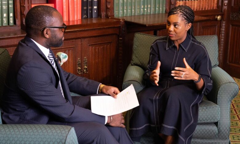 Kemi Badenoch trvala na tom, že je jedinou politikou s „páteří“, který bude upřímný k voličům při výbušném útoku na její soupeře. Konzervativní vůdce varoval pane Keir StarmerPo letech nekonečných daňových túry zanechá „nebezpečná“ labouristická strana. Ale konzervativní vůdce navrhl a Nigel Farage Premiership by byla ještě horší, protože by „vyhodil do povětří ekonomiky“ zvýšením dluhů země ještě větším státem sociálního zabezpečení.
