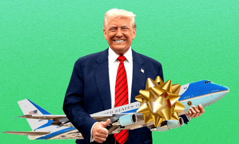 Od roku 2017 se Trump cítil vtipně, když zasáhl lukrativní novou dohodu s obchodním partnerem, aby přijel nabídku královské rodiny Kataru 747, která bude k dispozici pro jeho použití po odchodu z kanceláře. Když se tento týden zeptal na tryskový tryskový tryska ve výši 400 milionů dolarů, Trump rozzlobeně odpověděl: „Nikdy bych nebyl jedním, kdo by odmítl takovou nabídku. Myslím, že bych mohl být hloupý člověk, který řekne:„ Ne, nechceme bezplatné, velmi drahé letadlo. “ Ale to bylo – myslel jsem si, že to bylo velké gesto. “