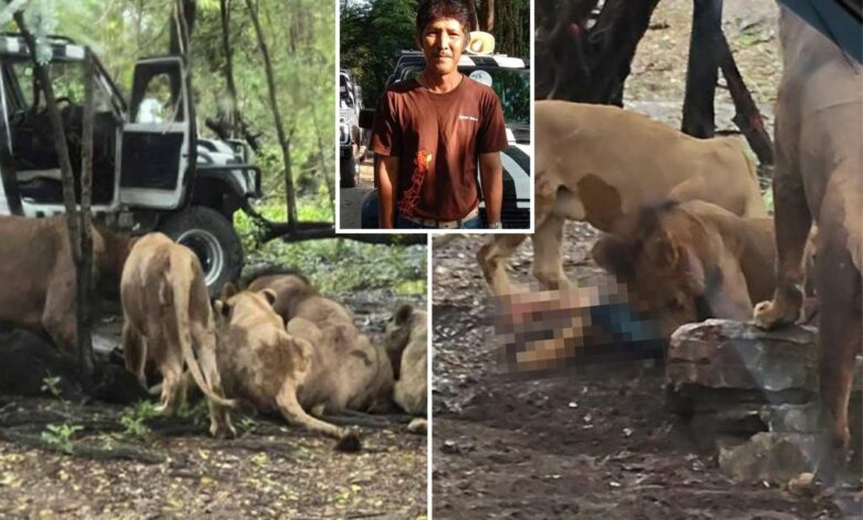 Zookeeper se živí lvi před vyděšenými turisty, kteří sledovali, jak velké kočky žvýkaly jeho maso k kosti, podle zpráv a videí s břišem žaludku.