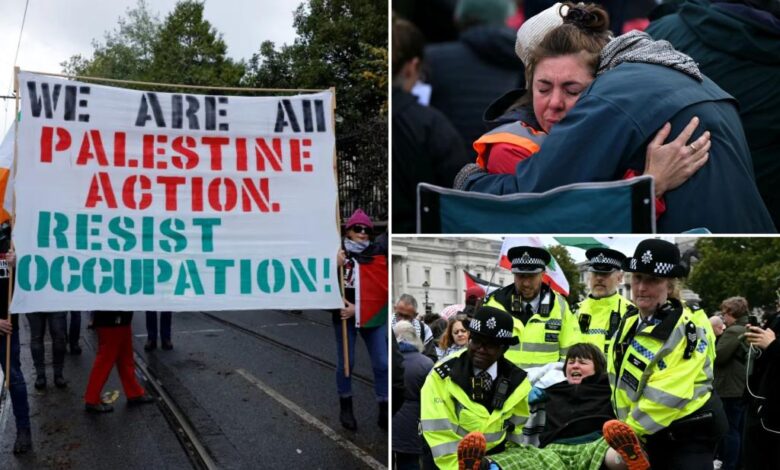 Londýnská policejní zatčení protestujících proti Palestinskému zákazu