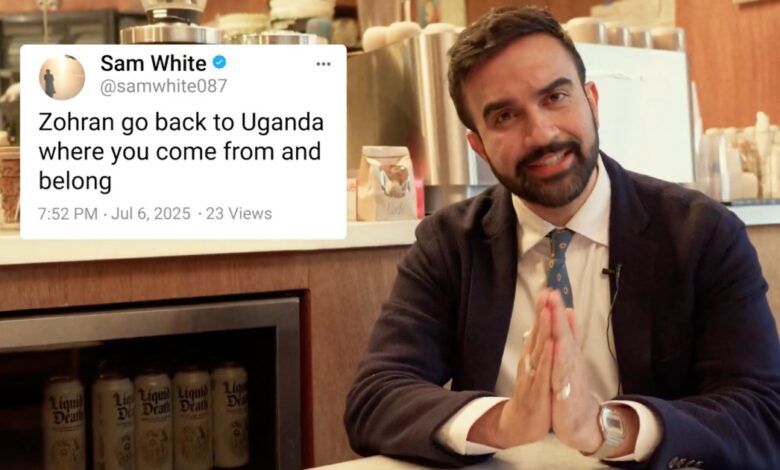 Ve klipu hrál Mamdani při explozi rasistických útoků a řekl mu, aby se „vrátil“ do Afriky. Také připravil řetězec titulků těžkých na konzervativním naklonění New York Post.