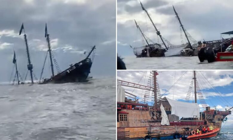 Záběry s klesáním čelisti zachytily okamžik, kdy se ikonická plachetnice potopila z pobřeží mexického letoviskového města-místní obyvatelé nechávali smutku ztráty kusu jejich „duše“.