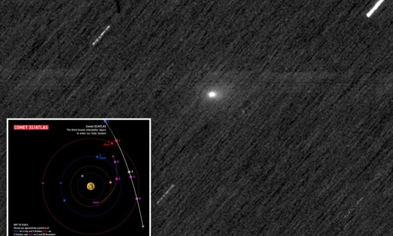 3i/Atlas zářící na marťanské obloze byl zachycen celkem sedmi orbitérům z několika agentur, protože to nejbližší na své cestě přes vnitřní sluneční soustavu – přicházelo do 12 milionů mil od červené planety.