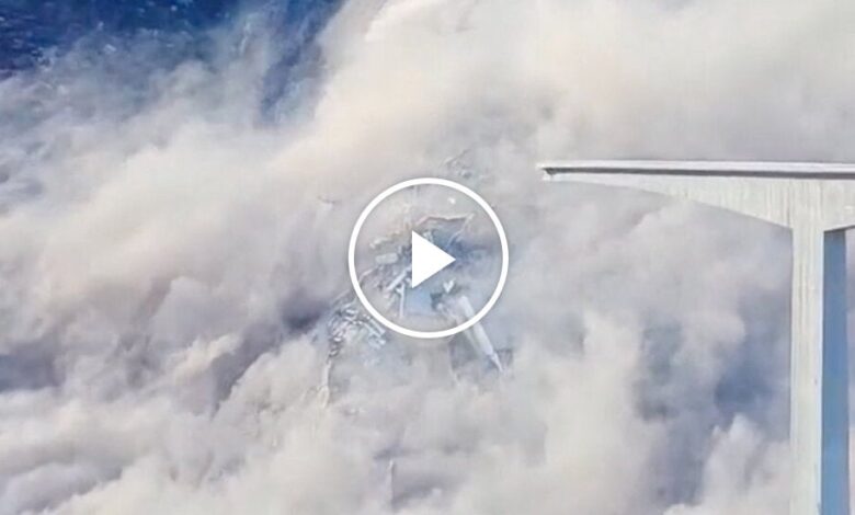 Část mostu Shuangjiangkou Hongqi v provincii Sichuan v Číně se v úterý zhroutila a do vzduchu vyslala obrovské oblaky prachu.