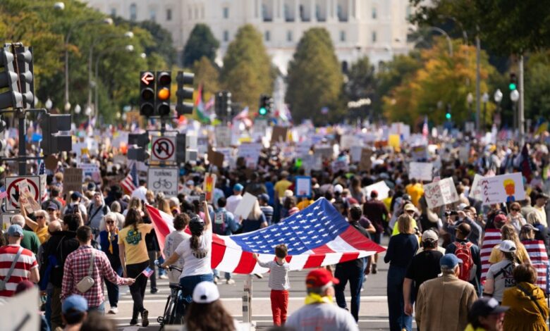 Protest No Kings míří k budově Kapitolu USAAllison Robbert/AP
