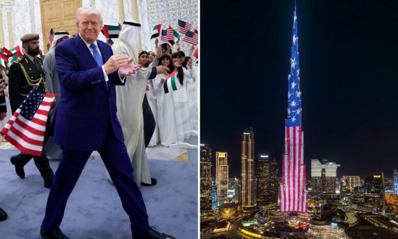 Spojené arabské emiráty ocenily prezidenta Trumpa a Spojené státy slavným světelným poctou americké vlajky na nejvyšší budově na světě.