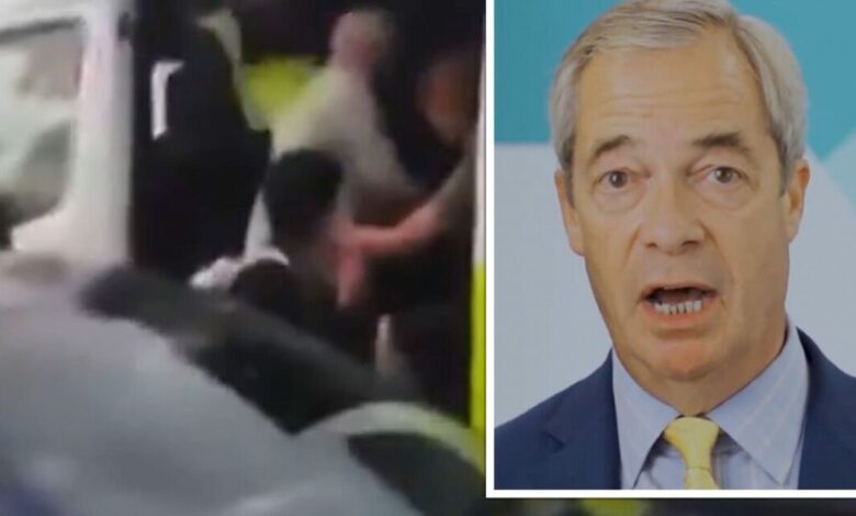 Nigel Farage sdílel klip, který se zdá, že ukazuje demonstrantům dostat se do policejního dodávky (Obrázek: x)
