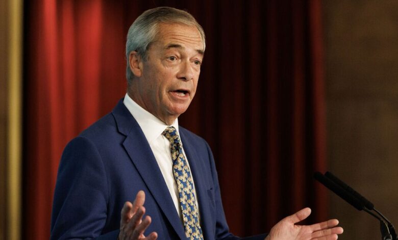 Nigel Farage Na tiskové konferenci v Londýně řekne: „Skvělé péče skončí pro všechny, kteří nejsou britským občanem, uzavřeme mezery. Reforma zajistí, že blahobyt je pouze pro občany Spojeného království.