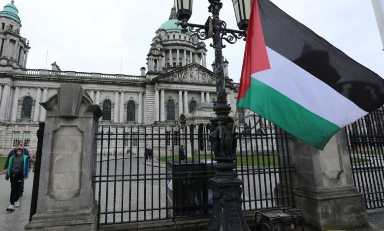 Palestinská vlajka byla vznesena nad belfastskou radnicí poté, co zastupitelé prošli hlasováním o „hluboce rozdělující“ otázce. Vlajka byla vztyčena krátce po 12:00 v úterý 2. prosince poté pohyb Sinn Fein vztyčit vlajku na další dostupný den prošel 32 hlasy proti 28 na zasedání zastupitelstva v pondělí večer.