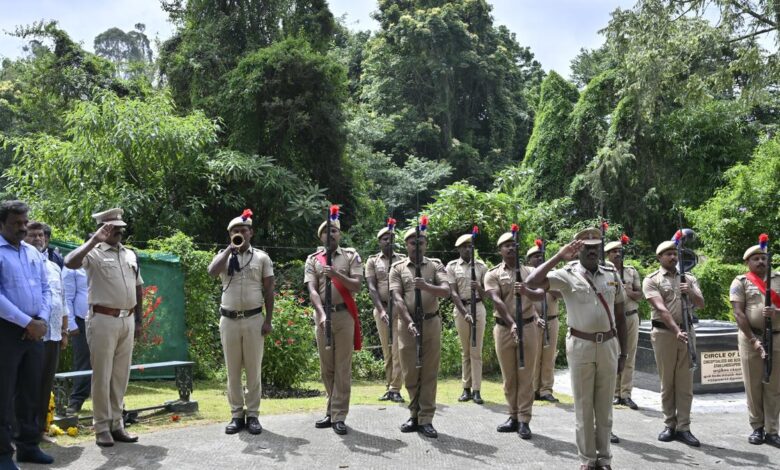 Okresní příjmový důstojník M. Narayanan položil věnec, po kterém následoval pozdrav se zbraněmi policejním personálem, za přítomnosti rodiny a přátel pana Srinivasana.