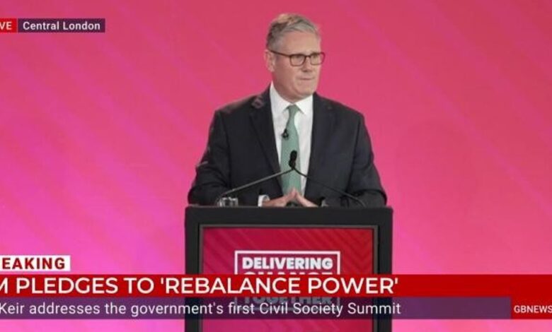 Předseda vlády Sir Keir Starmer se zabývá summitem občanské společnosti v Londýně, když se zavázal k „znovu vyvážené moci“ mezi vládou a společností.