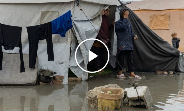 načteno nové video: Přívalové deště zaplavují stanové tábory v Gaze a přinášejí další devastaci