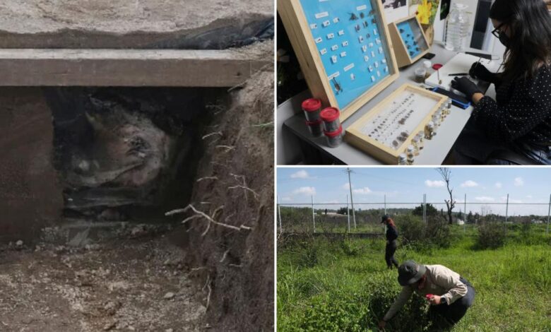 Komise Jalisco porovnává a analyzuje mouchy, brouky, rostliny a půdu zotavené z lidských a prasečích hrobů.