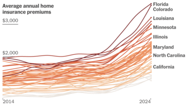 Nový výzkum sdílený s The New York Times odhaduje, do jaké míry rostoucí pojistné na pojištění domácnosti, tažené vyšší změnou klimatu, kaskádovitě proniká do širšího trhu s nemovitostmi a snižuje hodnoty domů v oblastech nejvíce ohrožených katastrofami.