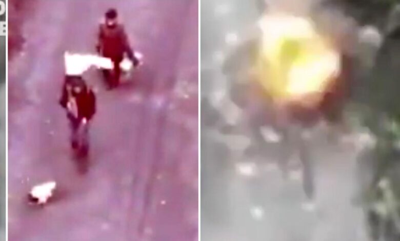 Dvojice kráčela po venkovské silnici v Kruglyakivce – vesnici v Charkovské oblasti jižně od Kupianska, kam Moskva podle Institutu pro studium války se sídlem v DC nedávno postoupila, když se stali terčem útoků dronů zády k sobě. video zveřejněné Ukrajinou.