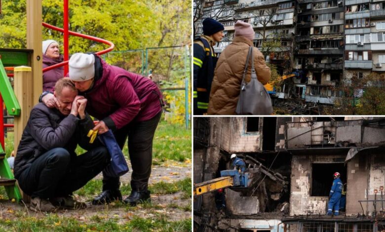 Tři lidé byli zabiti a 29 zraněno, včetně šesti dětí, v a Ruský noční letecký útok na Kyjev, který zničil dva výškové bytové domy, uvedli v neděli ukrajinští představitelé.