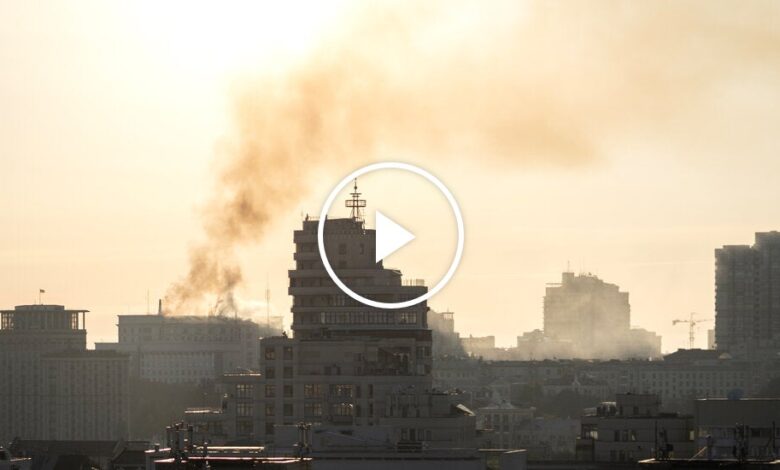 Rusko zahájilo stovky explodujících dronů a návnad na celé Ukrajině v dosud největším leteckém útoku ve válce, zabilo nejméně pět lidí a nastavilo vládní budovu v Kyjevě.