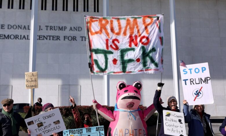 Demonstranti se shromáždili před Kennedy Center poté, co správní rada rozhodla přejmenovat instituci na The Donald J. Trump a The John F. Kennedy Memorial Center for the Performing Arts.Imago přes ZUMA Press