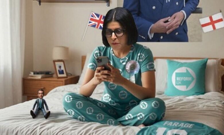 Shabana Mahmood poté vydal zuřivou čtyřslovnou odpověď Reforma Spojeného království navrhl, aby byla více doma Nigel Farageje strana než labouristé. Reforma Spojeného království vytvořil falešný obrázek Ministr vnitra sedí na posteli v pyžamu se značkou Reform, s plakátem s úsměvem Pane Farage na její zdi.