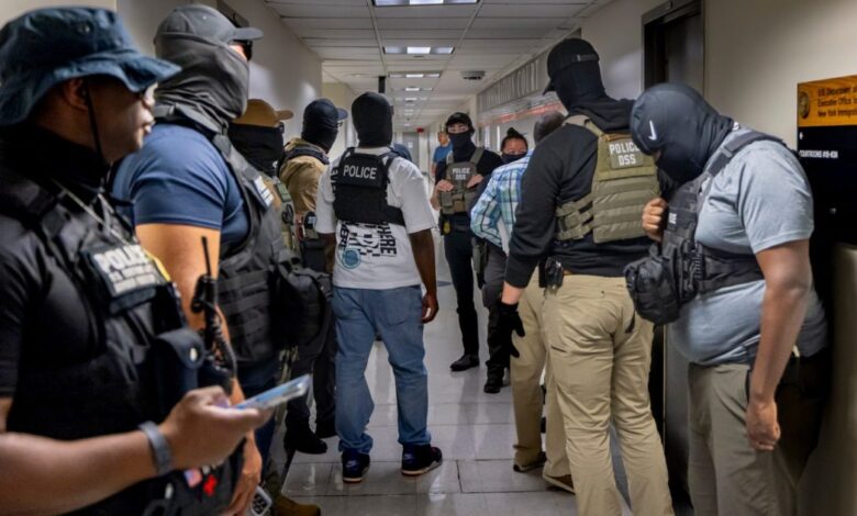 Právní opatření přichází, když 26 federálních náměstí bylo podrobeno kontrole od demokratických zákonodárců a obhájců práv přistěhovalců. Úředníci činní v trestním řízení zatkli v budově více přistěhovalců Po jejich soudních slyšeních. New York City Comptroller a bývalý mayorální kandidát Brad Lander tam byl zatčen Když se pokusil doprovodit imigranta ven a byl roje ledem. A devět demokratických členů Kongresu opakovaně zastupujících New York City požadoval Vstup do ledového zařízení na 26 federálních náměstí začátkem tohoto léta, bez úspěchu.