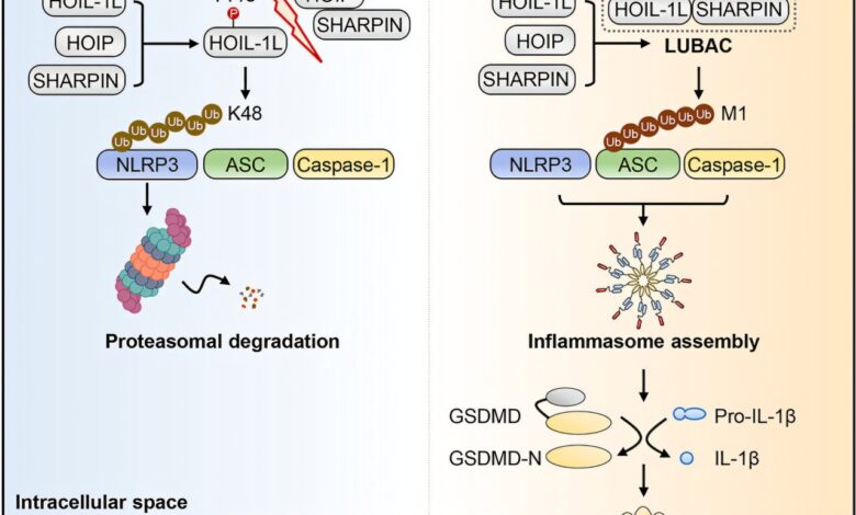 Yang Yu a kol., Patogenní fosforylace lineárního ubikvitinového aparátu způsobuje degradaci senzoru zánětlivého, degradace senzoru zánětlivých Buněčné zprávy (2025). Doi: 10.1016/j.celrep.2025.116286
