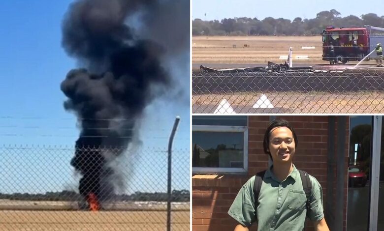 Studentský pilot zázračně odešel bez zranění z divoké letecké havárie na asfaltu letiště v Adelaide – se záběry zachycujícími okamžik, kdy letadlo vzplálo.