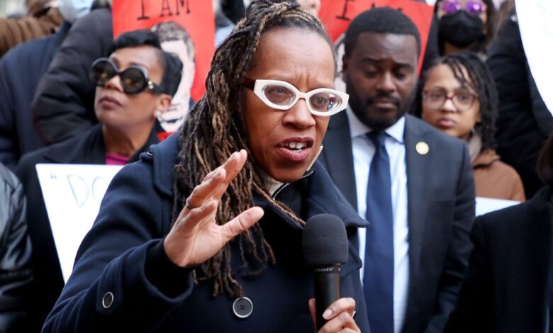 Republikán Lateefah Simon mluví na shromáždění.Gent Shkullaku/Zuma