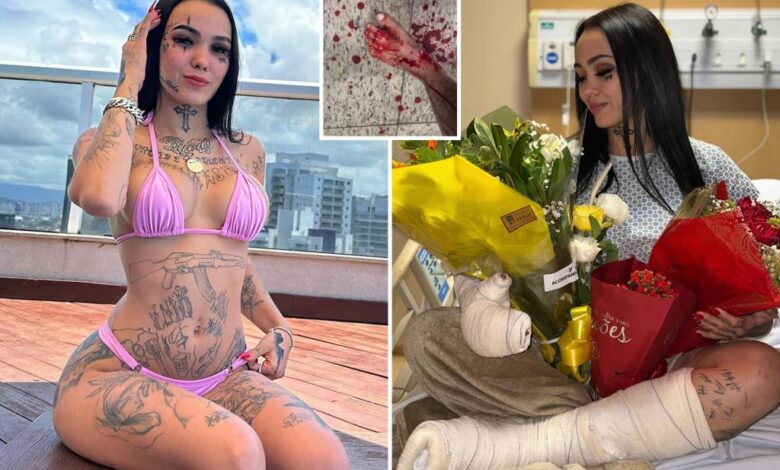 Tetovaný vlivný vliv Luna Abrahao opakovaně bodl na živý proud po dumpingu