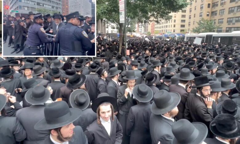 Tisíce ortodoxních Židů protestovaly kolem izraelského konzulátu v New Yorku, aby vyzvaly ke změně pravidel vojenského návrhu země