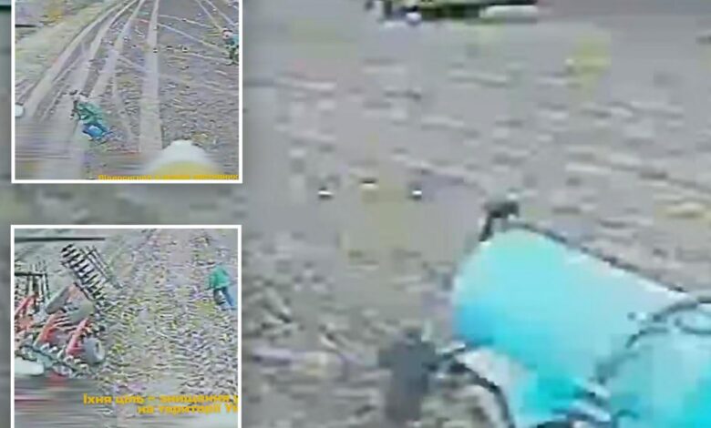 Divoké video ukazuje, jak ruský bezpilotní letoun loví zpanikařené ukrajinské farmáře v Doněcké oblasti – v pozadí zní znepokojivá hudba.