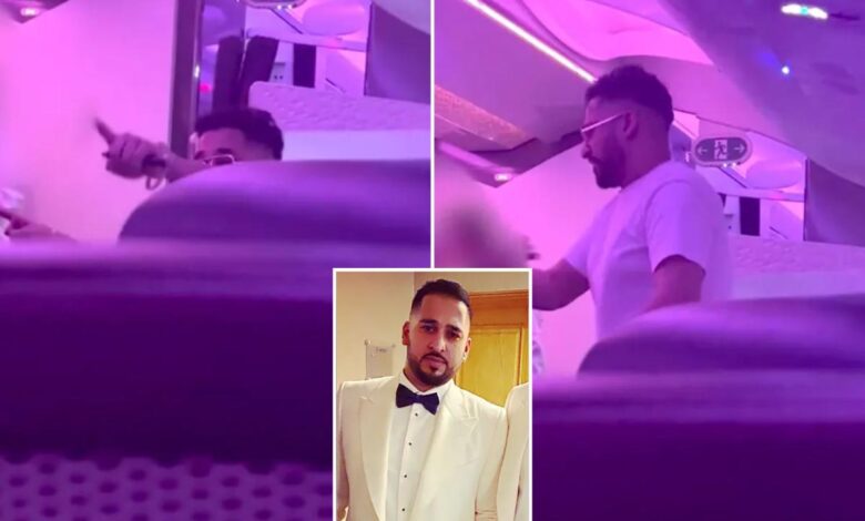 Salman Iftikhar, 37, cestoval první třídou z londýnského Heathrow do Lahore se svými třemi dětmi a jedna z jeho manželek v únoru 2023, kdy se stal násilným ve vzduchu.