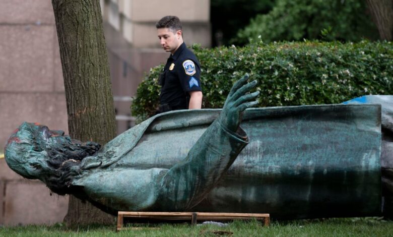 NPS cituje dva z Trumpových výkonných příkazů – “Učinit okres Columbia bezpečný a krásný“A„Obnovení pravdy a zdravého rozumu do americké historie„ – je součástí svého ospravedlnění pro přeinstalizaci sochy štiky. Zpráva dodává, že socha byla ve skladu od jejího odstranění a v současné době prochází restováním a pravděpodobně bude znovu nainstalována do října.